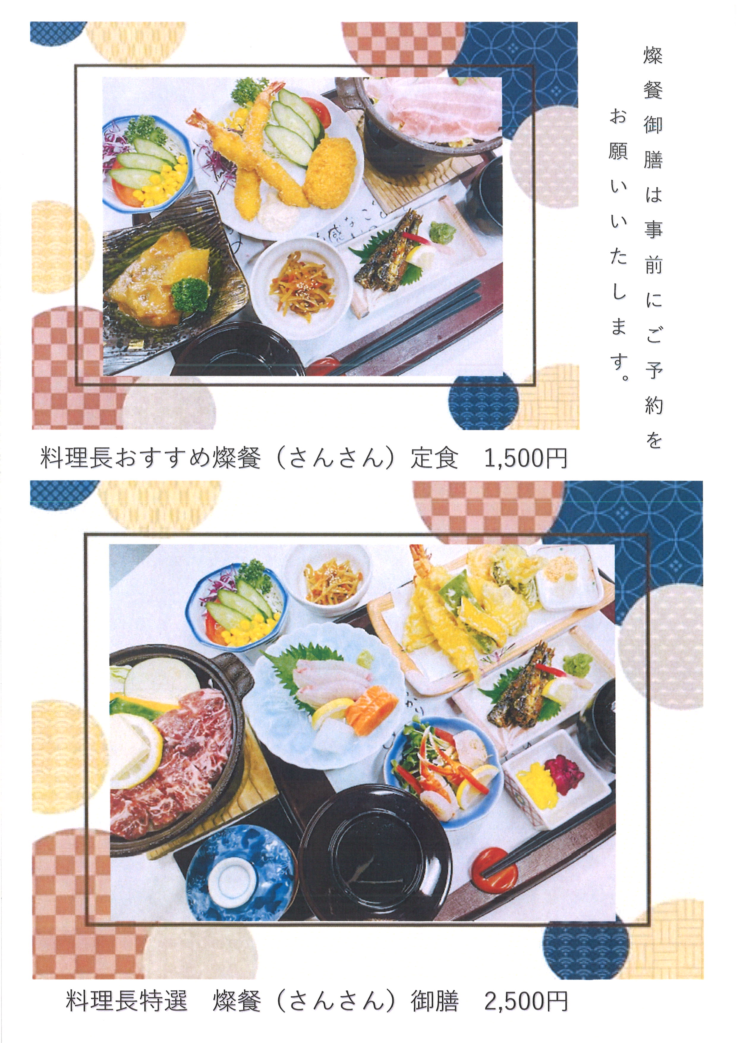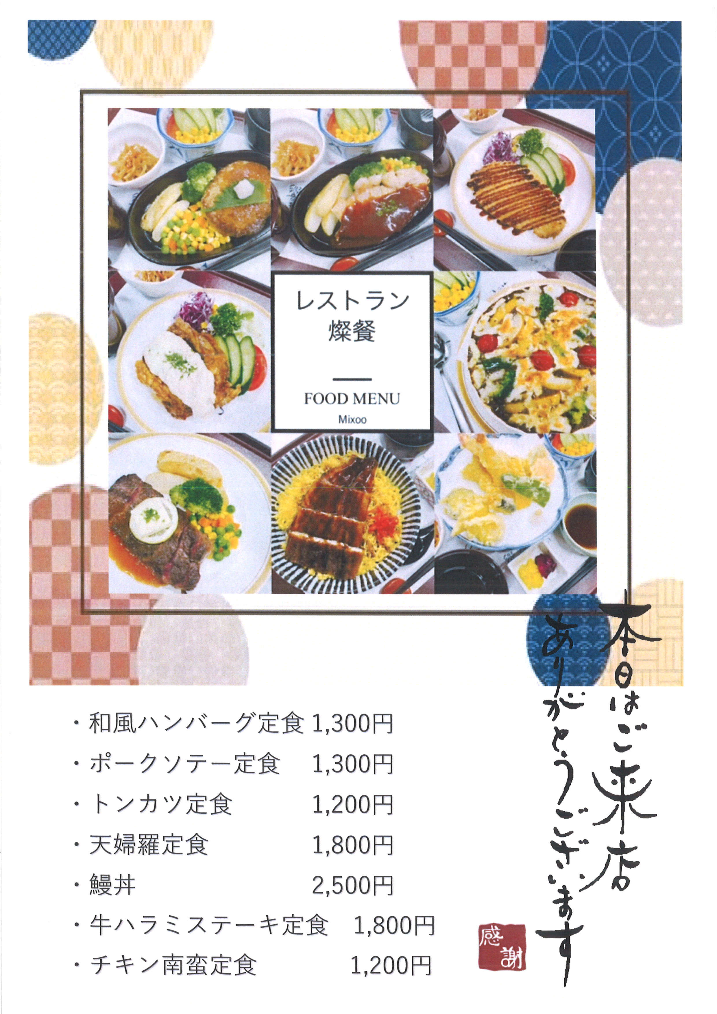 営業時間 朝 06:30~09:30(OS09:15) ※ご宿泊のお客様のみ 昼 11:30~14:00(OS13:30) 夜 17:00~21:00(OS20:30)