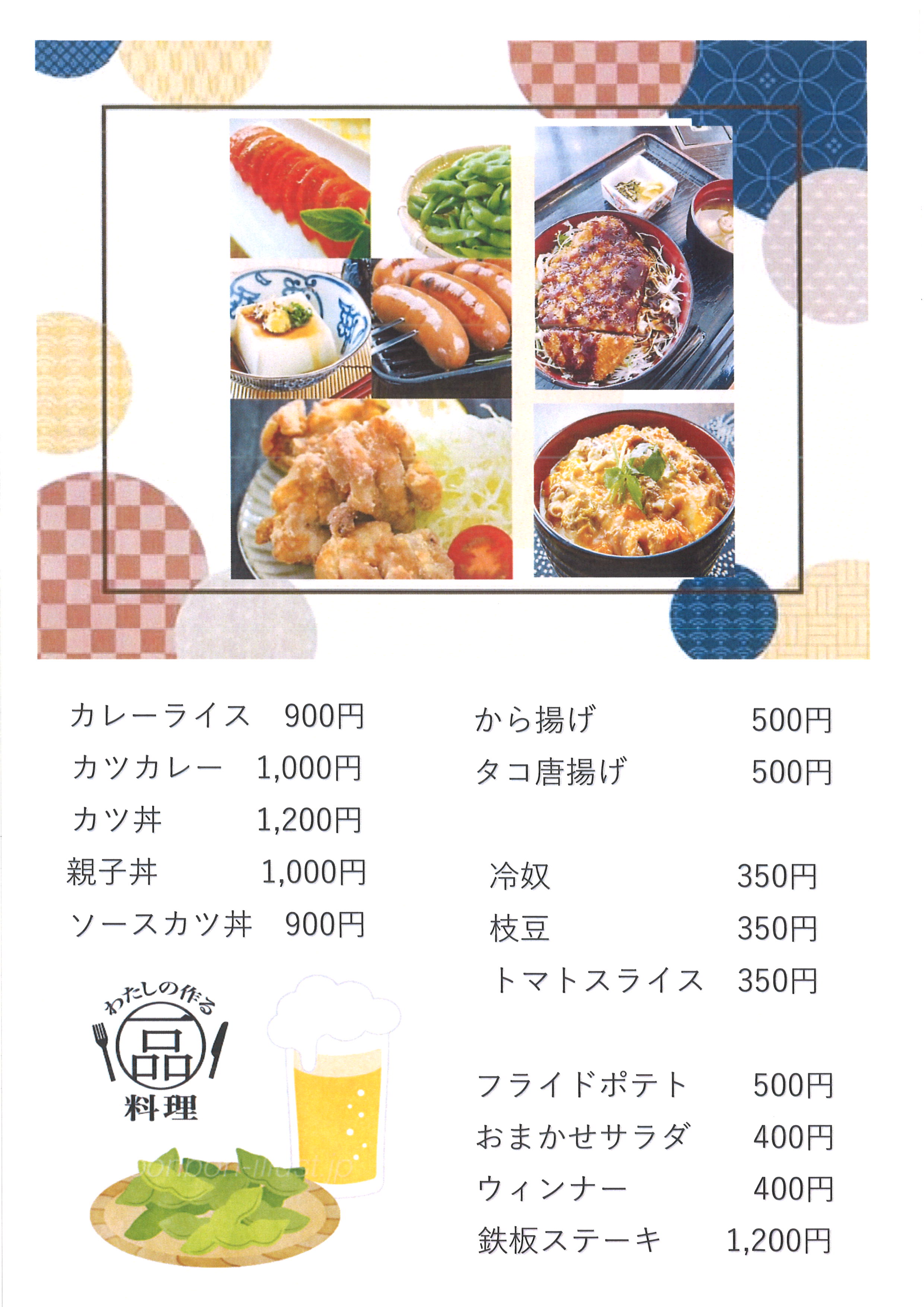 カレーや丼・おつまみなどもございます。 お仕事帰りにふらっと立ち寄るのに最適です。